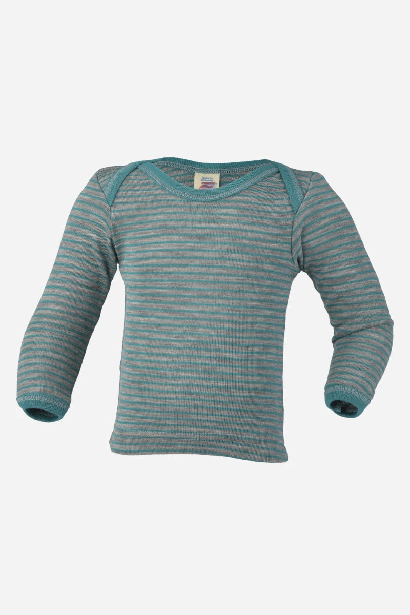 Maglietta manica lunga, con scollo all'americana, per neoanto e neonata in lana e seta. Perfetta per l'inverno e la mezza stagione.