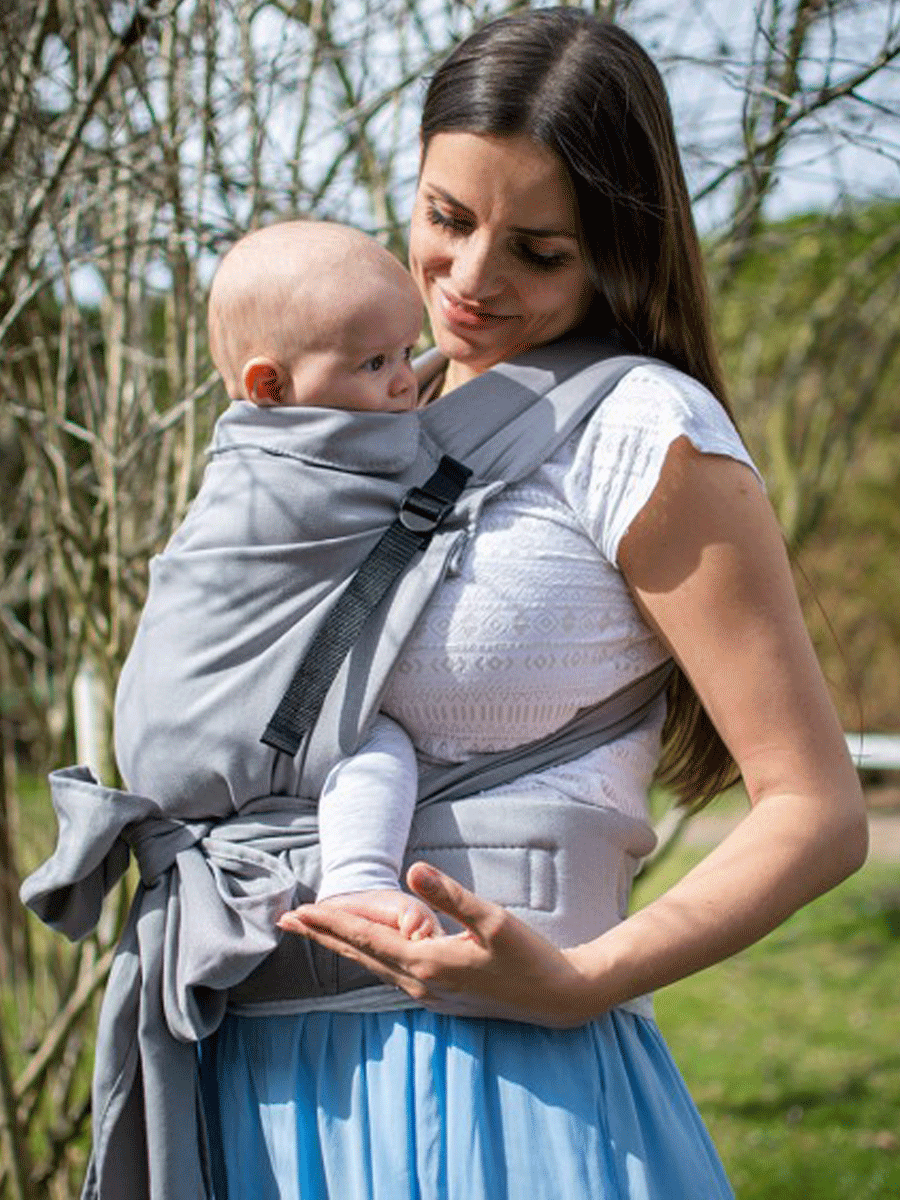 Potrete indossarlo per portare il vostro bambino sul davanti pancia a pancia (non fronte mondo), sul fianco e sulla schiena.