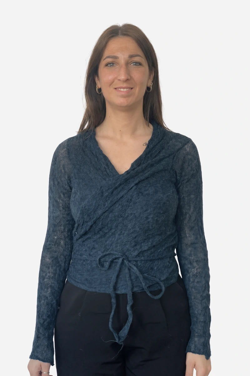 Cardigan donna corto con incrocio, manica lunga con vestibilità unica dalla 40 alla 48.