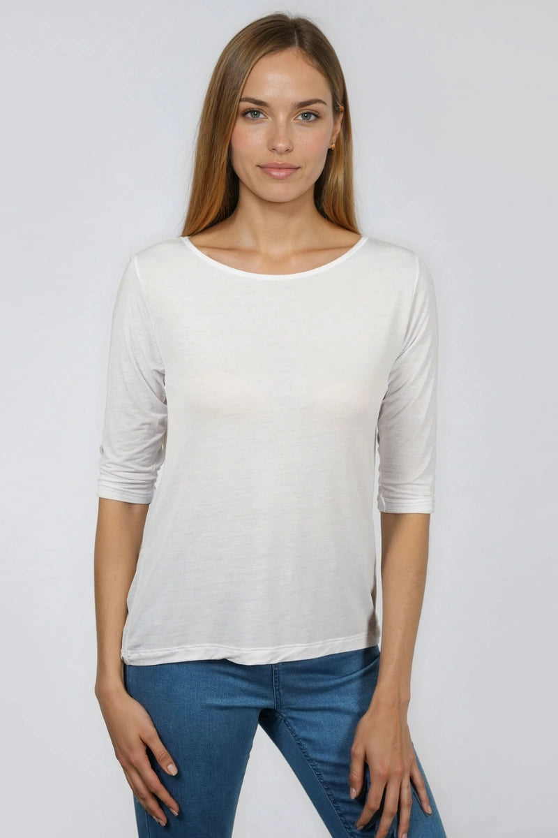 La maglia manica tre quarti donna in bamboo è un capo basico essenziale.